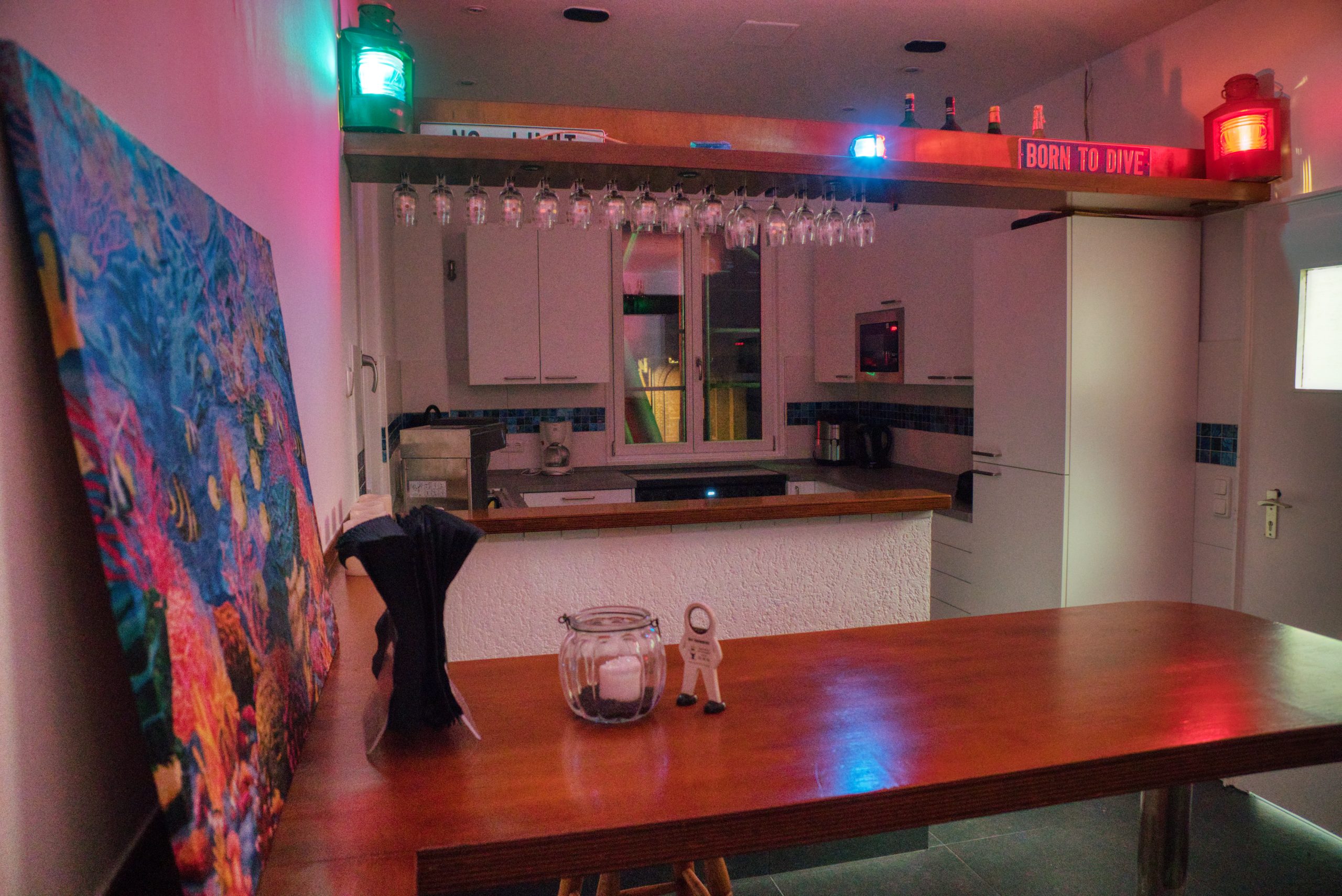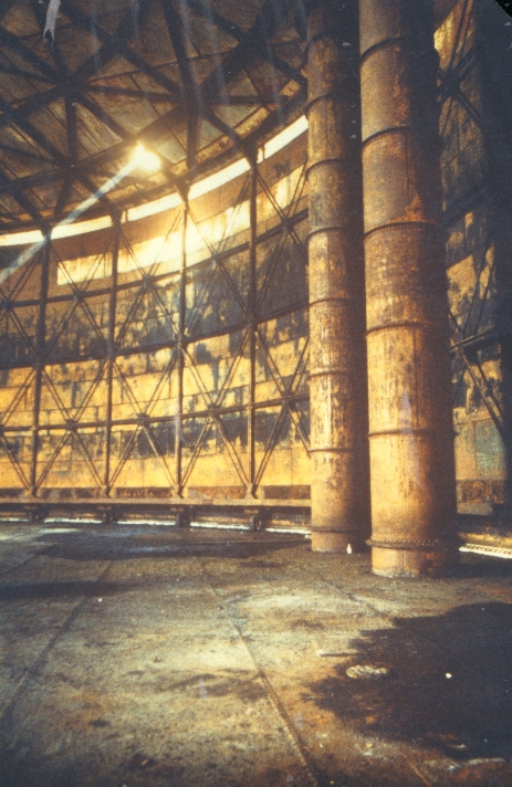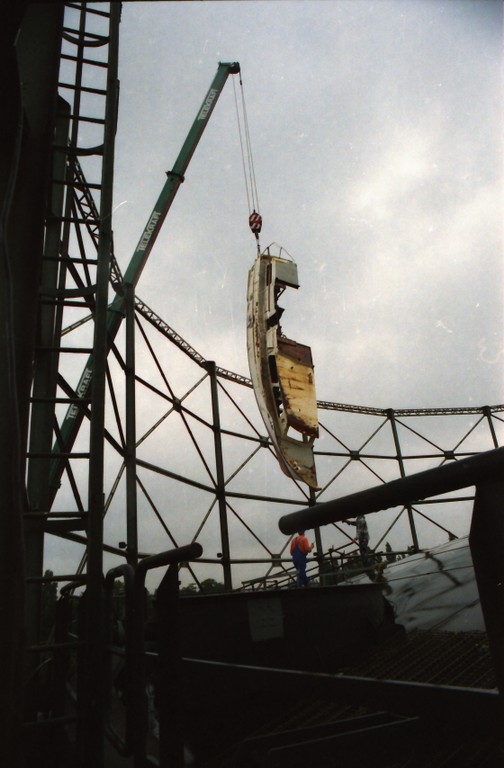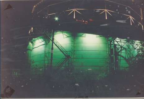 Ab Mitte 1996: Beginn der Arbeiten am Gasometer – Ablassen des Regenwassers, Reinigung, Entfernen der Ballastgewichte (270 Tonnen), Einbringen des Schiffswracks, einer Cessna und der Autos durch einen Ausschnitt im Glockendeckel, Bau des künstlichen Riffs und des Schilderbaums.